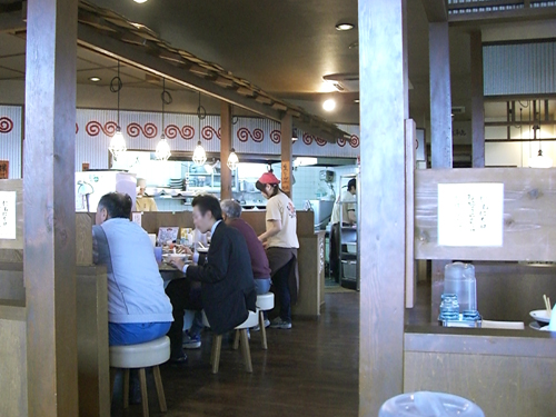 カウンターの上には屋根が付いてて、屋台のラーメン屋みたいな感じ。