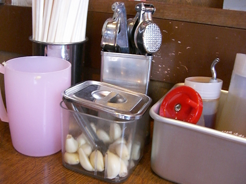 テーブルに生ニンニクと、ニンニククラッシャーが置いてありましたが、ラーメンに入れたらかなり匂いそうなので今回はやめときました。今度挑戦したいと思います。