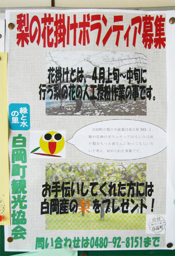 梨の花掛けボランティア募集のポスター