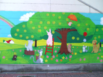 新たな発見!駅の階段脇の壁画が、以前と変わっていました。