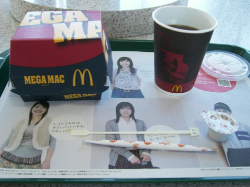 一番近いビックマックで我慢しましたが、メガマックのクーポンとコーヒー無料券をいただきました。